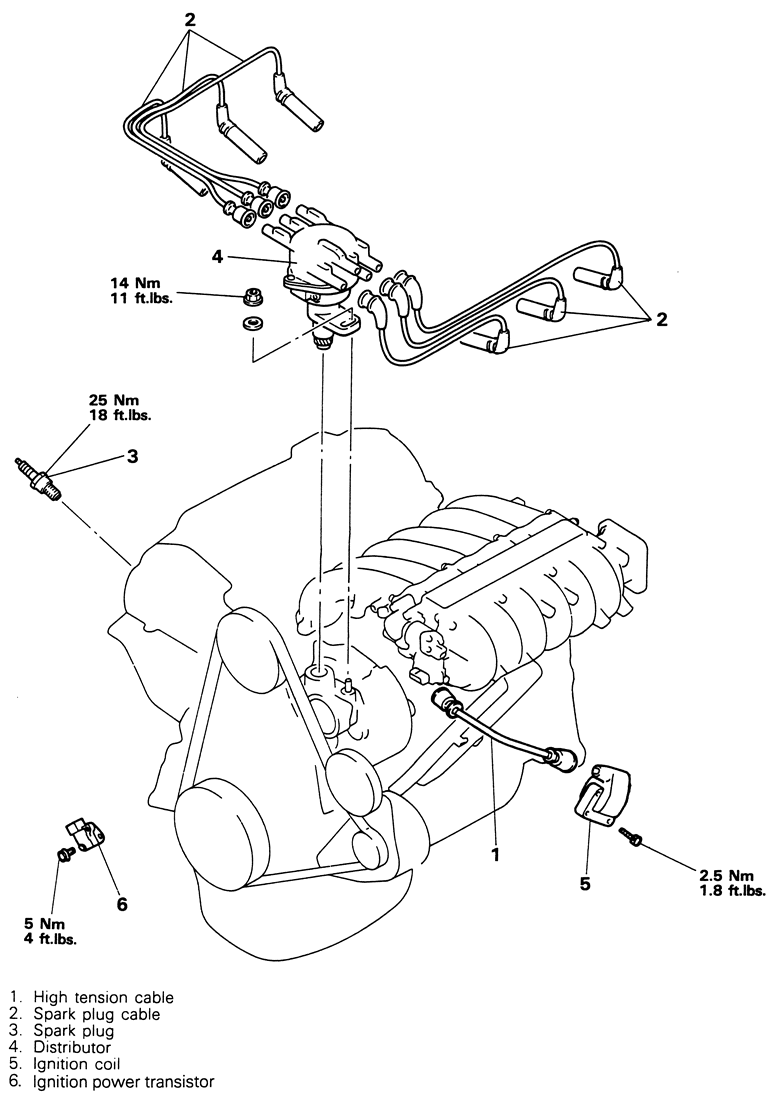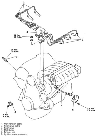 NOTE: The ignition coil is an integral part of the distributor.