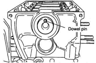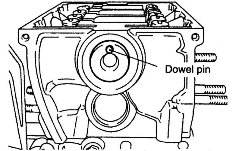 | Fig. 2: Positioning of the camshaft dowel pin — Mirage 1.5L (4G15) engine |