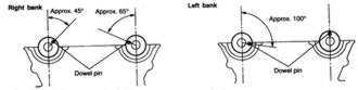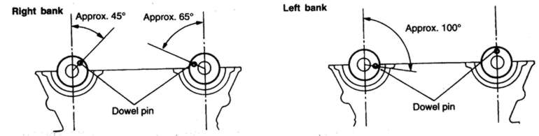 | Fig. 10: Proper positioning of the camshaft knock pins — 3.0L DOHC engine |