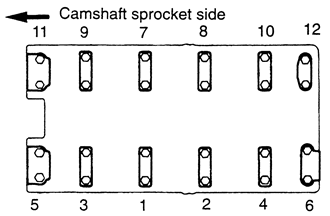 | Fig. 6: Camshaft bearing cap tightening sequence — 1.6L and 2.0L DOHC engines |