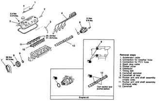 | Fig. 11: Camshaft, rocker arm and shaft assemblies — 3.0L SOHC engine |