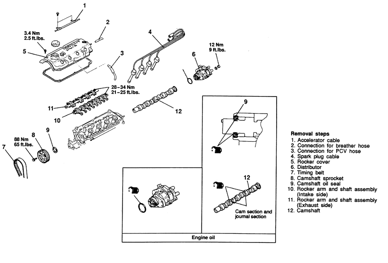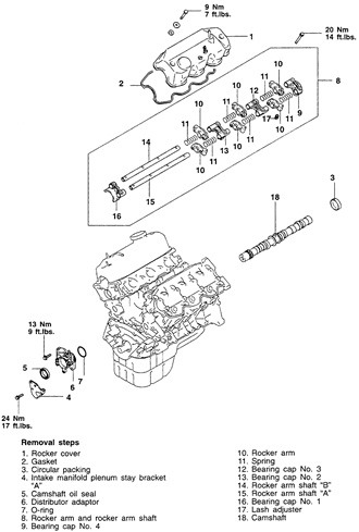 | Fig. 7: Camshaft, rocker arm and shaft assemblies — 2.4L engine |