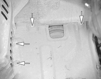 Fig. 1: Remove the fasteners, then remove the side inner fender splash shield