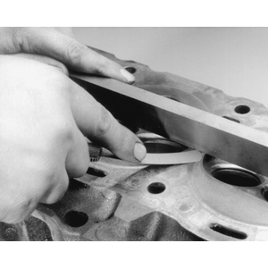After you have cleaned the gasket surface of the cylinder head of any old gasket material, check the head for flatness.
