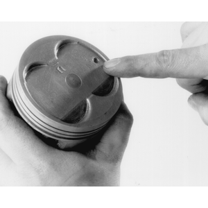 | Fig. 2: Most pistons are marked to indicate positioning in the engine (usually a mark means the side facing the front) |