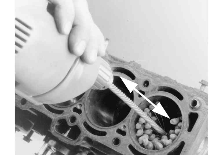 | Fig. 1: Use a ball type cylinder hone to remove any glaze and provide a new surface for seating the piston rings |