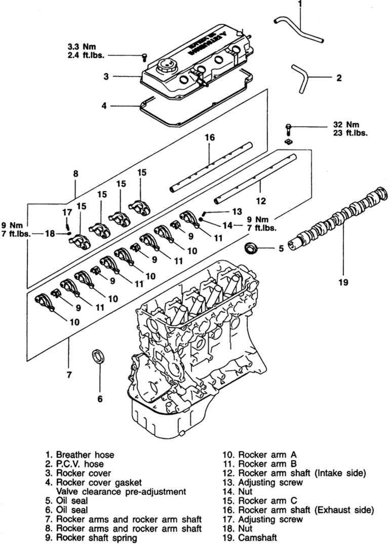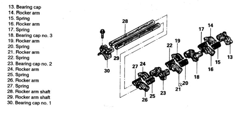 - Disassemble the rockers and the rocker shaft springs from the rocker shafts.