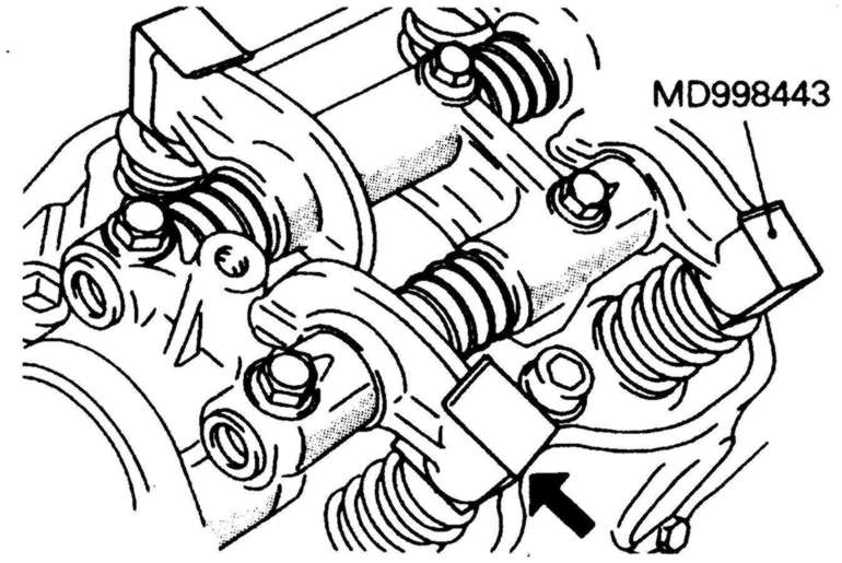 - Remove the valve cover. Install lash adjuster retainer tools MD998443 or