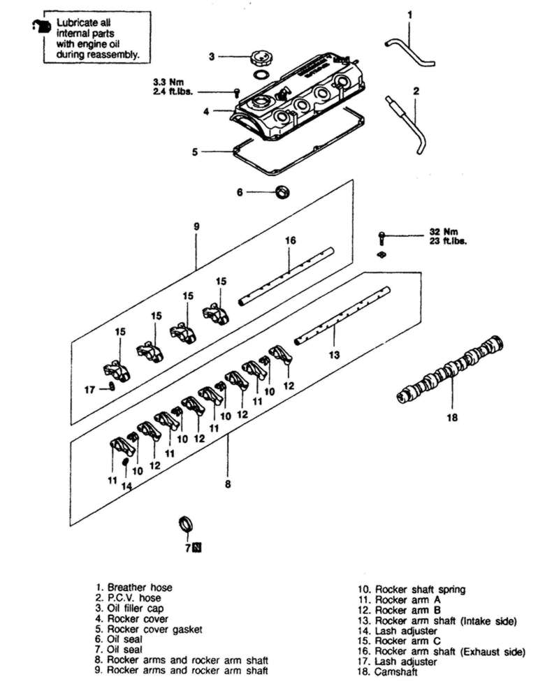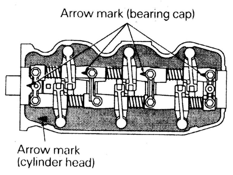 - Lubricate the camshaft and rocker shaft with clean engine oil and position