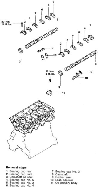 to 15 ft. lbs. (20 Nm). Remove the lash adjuster retainers.