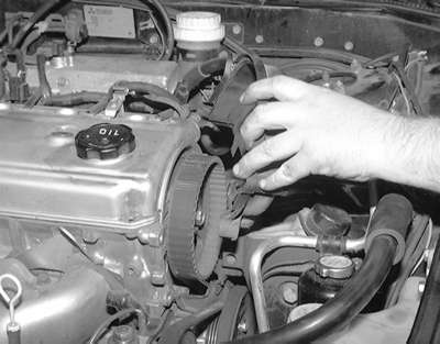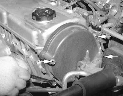 | Fig. 6: The upper timing cover is retained by three bolts.