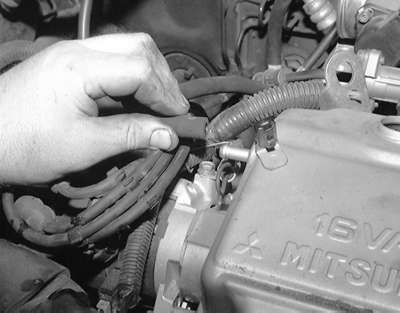 | Fig. 3: Remove the PCV valve and hose from the valve