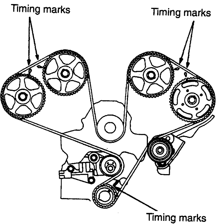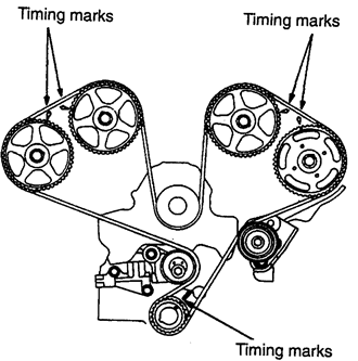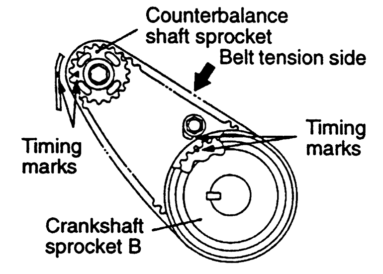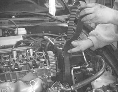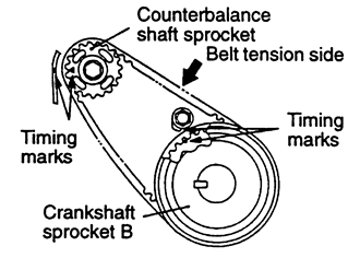 NOTE: If the timing belt is to be reused, mark the direction of rotation on the flat side of the belt with an arrow.
