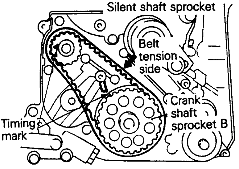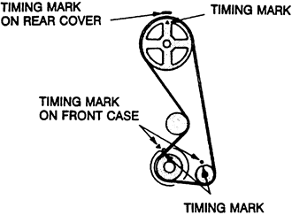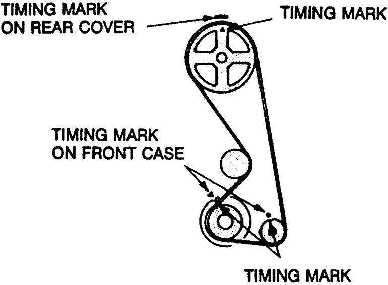 NOTE: Always rotate the crankshaft in a clockwise direction. Make a mark on the back of the timing belt indicating the direction of rotation so it may be reassembled in the same direction if it is to be reused.