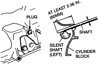 | Fig. 7: Checking the rear silent shaft for proper positioning — 1.8L and 2.0L SOHC engines |
