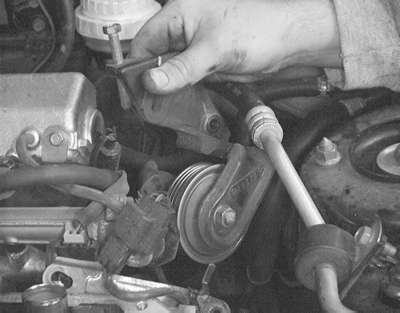 | Fig. 15: Remove the A/C belt tensioner pulley and bracket