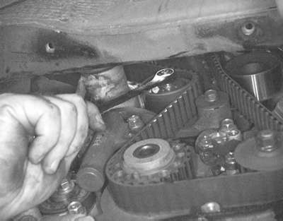 If any binding is felt when adjusting the timing belt tension by turning