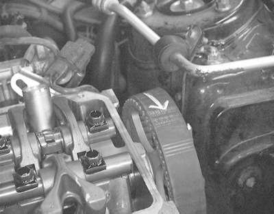 NOTE: Keep fingers out from between the camshaft sprockets. The sprockets may move unexpectedly because of valve spring pressure and could pinch fingers.