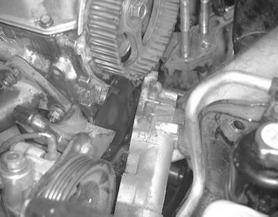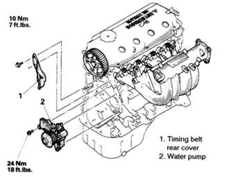 | Fig. 3: Water pump mounting — 2.0L DOHC engine shown |