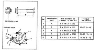 | Fig. 14: Water pump bolt identification — 2.4L Engine |