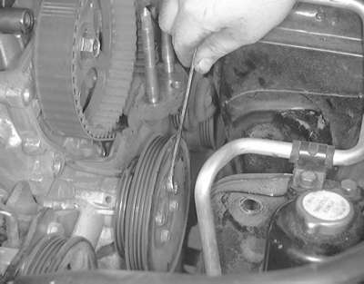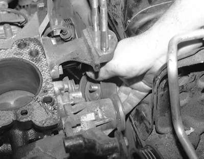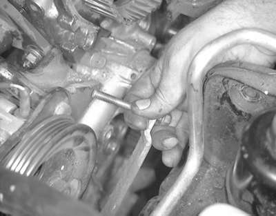 | Fig. 7: Remove the A/C belt idler pulley bracket retaining