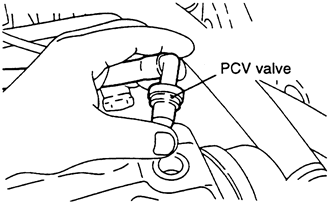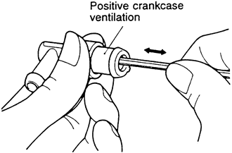 | Fig. 1: With the engine idling, check the end of the PCV valve to see if vacuum is present |