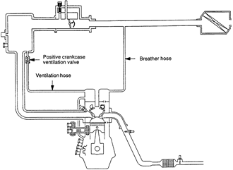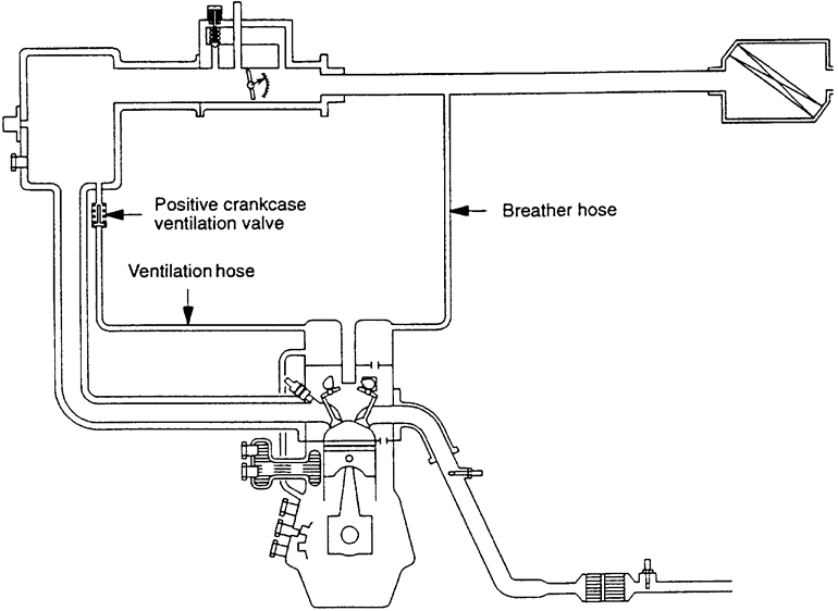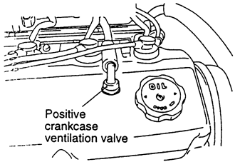 All engines are equipped with the Positive Crankcase Ventilation (PCV) system. The PCV system vents crankcase gases into the engine air intake where they are burned with the fuel and air mixture. The PCV system keeps pollutants from being released into the atmosphere. It also helps to keep the engine oil clean, by ridding the crankcase of moisture and corrosive fumes. The PCV system consists of the PCV valve, the nipple in the air intake and the connecting hoses.