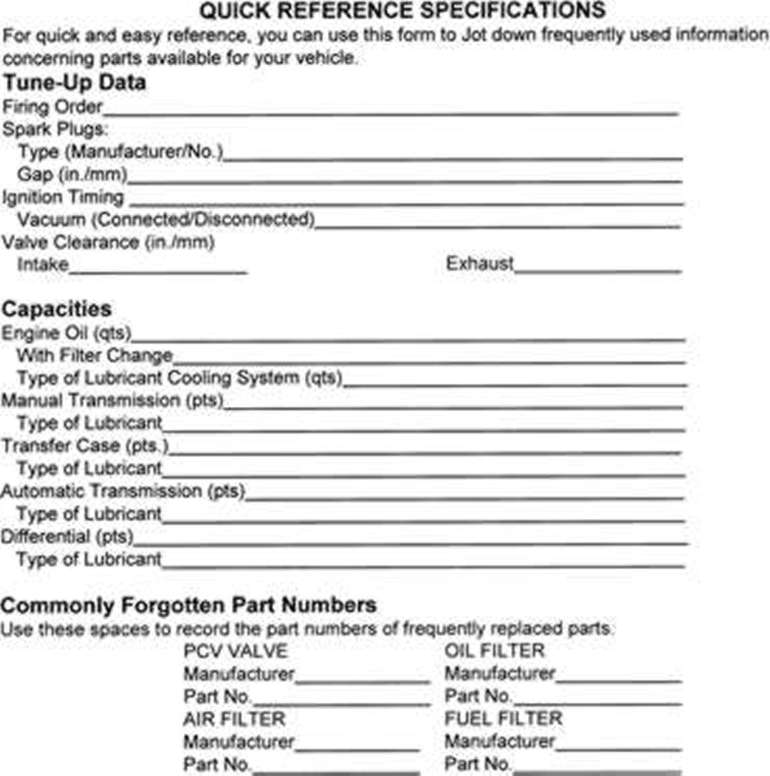 | Fig. 1: Make copies of this chart and keep with your vehicle |