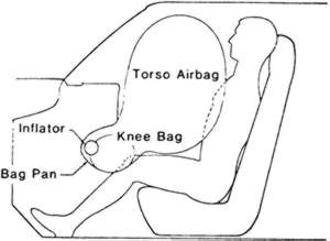 | Fig. 3: Low mounted passenger air bags are designed to give lower torso protection in frontal impact situations |