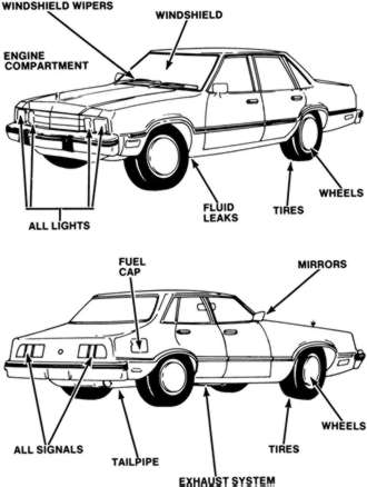 | Fig. 5: Walk around your vehicle and check the items listed |