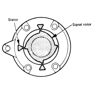 On this engine, the reluctor gap can only be checked. Doing so is not a matter of routine maintenance, but usually is necessary only if the distributor is overhauled. However, too tight a fit between the signal rotor and the pickup stator could cause rotation of the distributor to damage the parts involved or produce an incorrect signal.