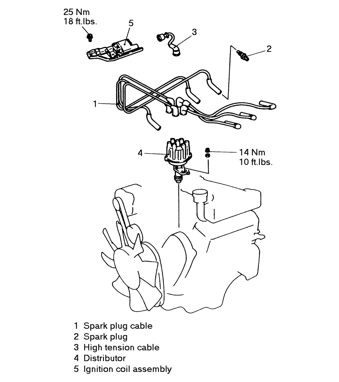 | Fig. 1: Ignition system and coil location — 2.4L engines |