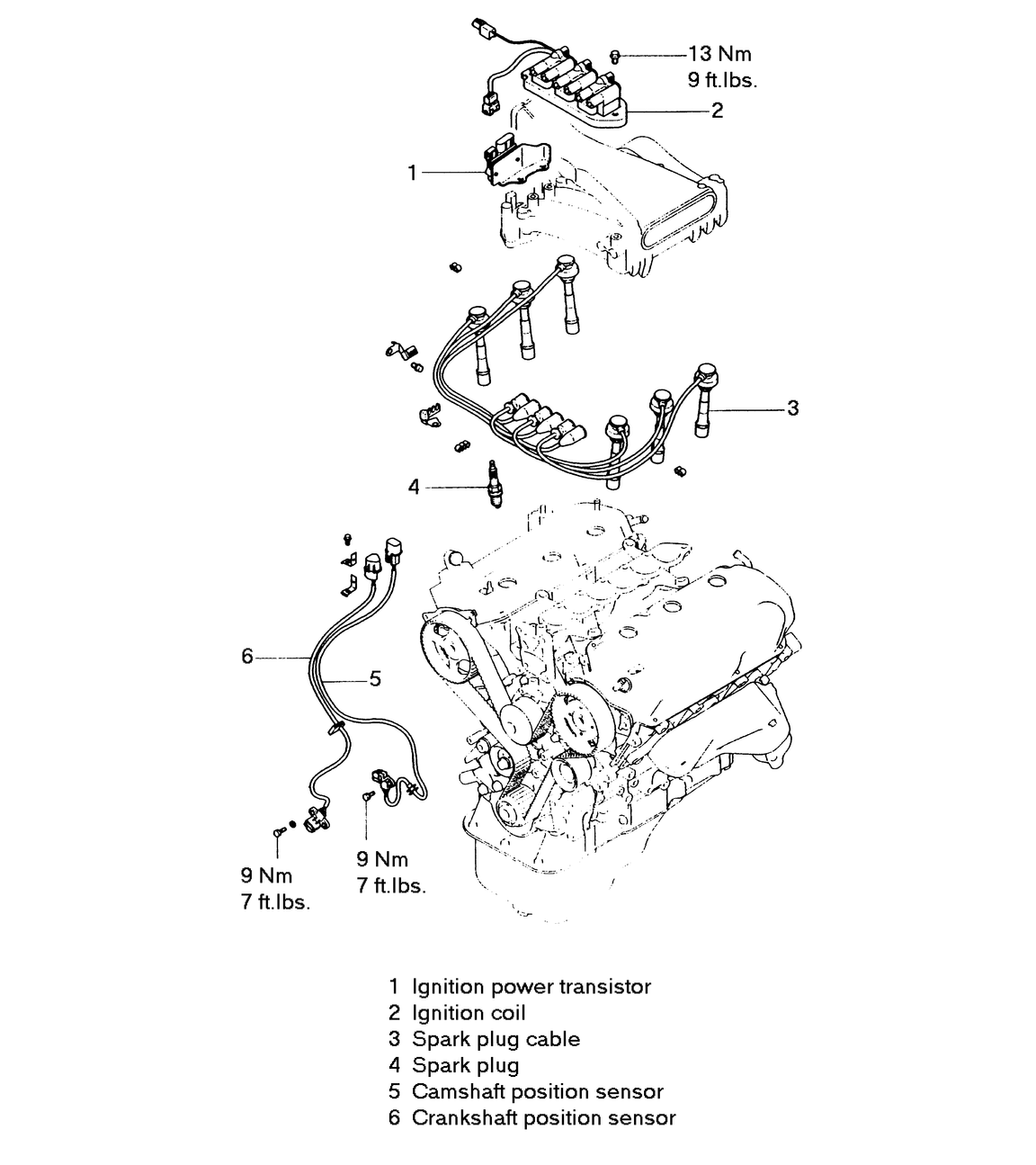 | Fig. 2: Ignition system and coil location — 3.0L (24 valve) engines |