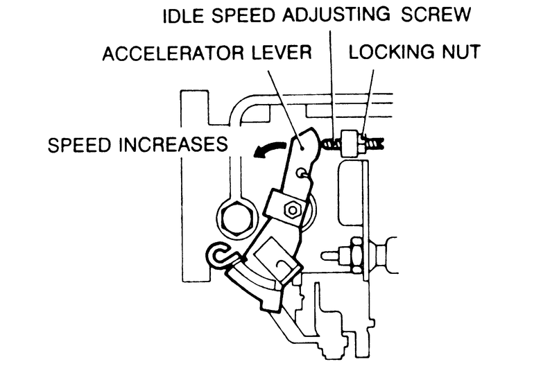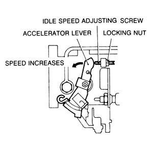 - Read the idle speed on the tachometer. If the idle is not within specifications, adjust the idle speed screw. Loosen the locknut, then turn the adjusting screw with a small screwdriver.