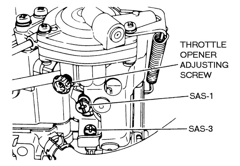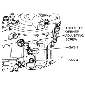 When adjusting the idle speed on carbureted engines adjust only SAS–1 screw