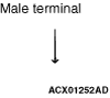 The male and female terminals are indicated as shown. The connector with male terminal(s) is called as male connector and indicated by two connector contour lines, while the connector with female terminal(s) is called as female connector and indicated by single connector contour line.