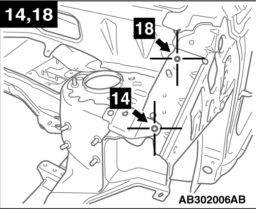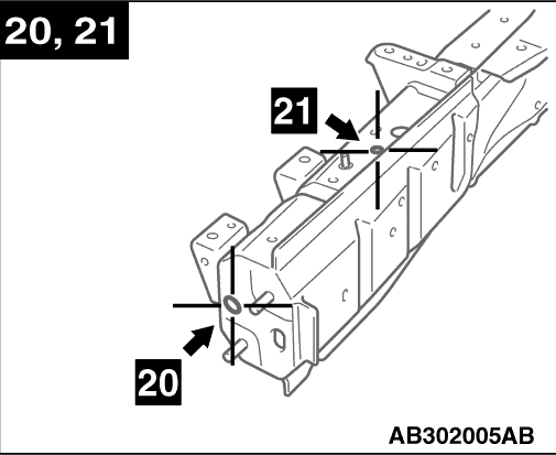 Centre of front sidemember bulkhead front positioning hole