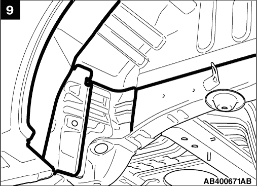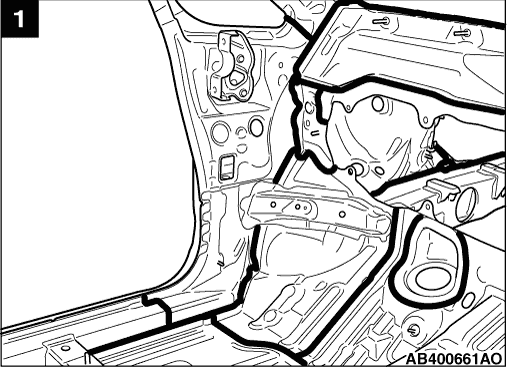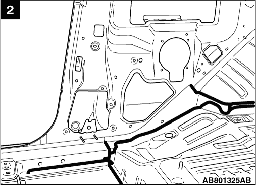 If the sealant application is directly visible on the outer plate and requires appearance quality of the application in areas such as the drip rail, pillar, clinch and so on, then apply the sealant so that it is flat, or wipe off any excess mounding after the application. Be careful not to obstruct the water draining hole.
