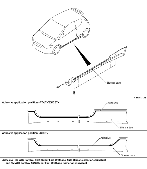 the side air dam uniformly so that the adhesive thickness is within 2 mm.