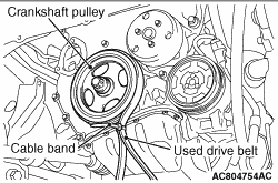 caution Do not hang the used drive belt for the crankshaft rotation stopper on the water pump pulley.