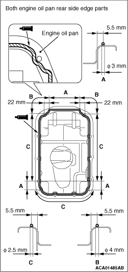 caution As oil leak is likely to occur at both ends of the rear side of the engine oil pan, be sure to apply the specified sealant as shown.
