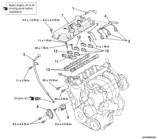 11 ± 1 N·m (Camshaft bearing cap mounting bolts)