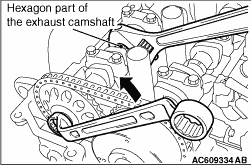 7.While holding the exhaust camshaft hexagonal area using a wrench or similar tool, tighten