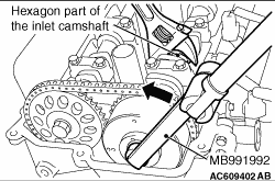 6.While holding the inlet camshaft hexagonal area using a wrench or a similar tool, use
