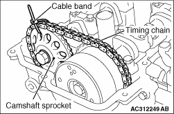 1.Fix the camshaft sprocket and the timing chain using a cable band or a similar tool.
