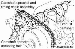 from the cylinder head, remove the camshaft sprocket mounting bolt, and disconnect the camshaft