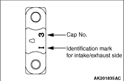 the cap numbers and identification marks so that right bearing caps are installed in right places. Identification marks (Die-stamped on front and No.