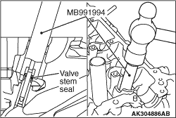 While compressing the valve spring using the special tool Valve spring compressor (MD999597),