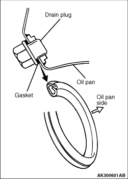 Replace the drain plug gasket with a new one. Install it with the side indicated in the