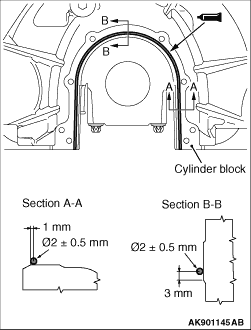 2.Apply a bead of specified sealant to the oil seal case mating surface of the cylinder block as shown.